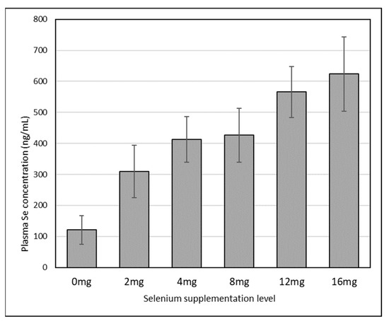 Changes in camel serum Se concentration according to the level of oral Se supplementation (reported by Faye and Seboussi, 2009 [121]).