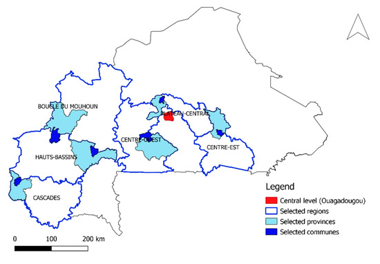 Map of Burkina Faso with the study areas (mapped by the first author using QGIS).