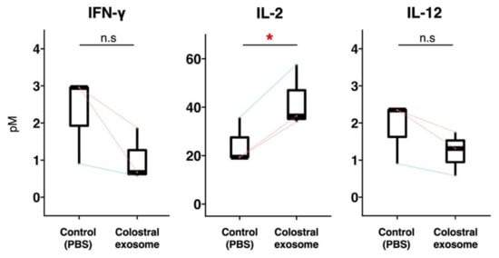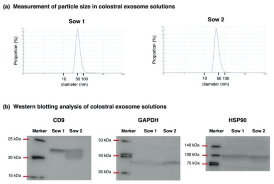 Chicago/Turabian StyleMiura, Hiroto, Itsuki Jimbo, Machi Oda, Michiko Noguchi, Kiyonori Kawasaki, Mayuko Osada-Oka, Takamitsu Tsukahara, and Ryo Inoue. 2022. "Effect of Porcine Colostral Exosomes on T Cells in the Peripheral Blood of Suckling Piglets" Animals 12, no. 17: 2172. https://doi.org/10.3390/ani12172172