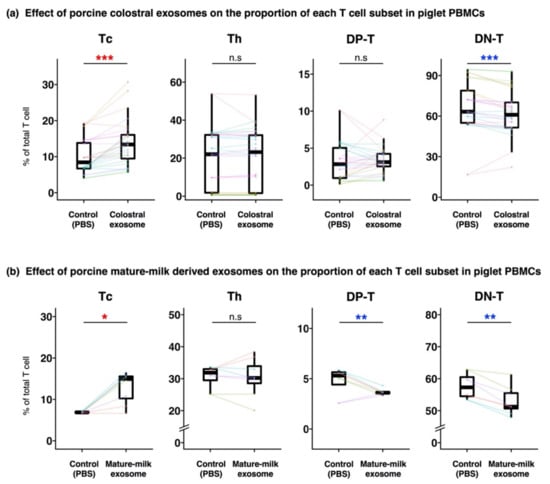 3.2. Compositions of T Cells in Piglet PBMCs Cultured with Milk-Derived Exosomes