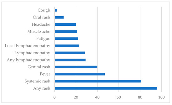 Signs and symptoms among confirmed cases of monkeypox (showed in percentage of presentation). Globally, as of 8 July 2022 [73].