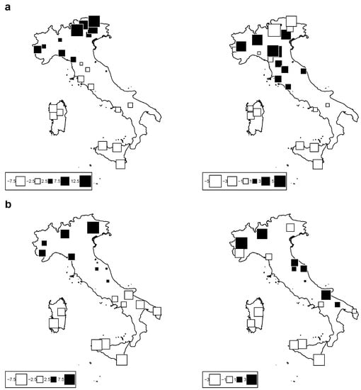 - Fratianni, S.; Acquaotta, F. The climate of Italy. In Landscapes and Landforms of Italy; Springer: Berlin/Heidelberg, Germany, 2017; pp. 29–38. [Google Scholar]