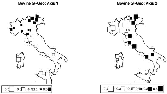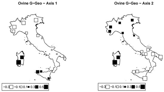 | RDA Component | Cattle (Fst = 0.177) | Sheep (Fst = 0.144) | |||