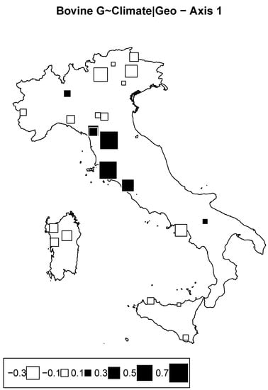 3.2.2. Redundancy Analysis according to Climate Conditioned for Geography in Cattle