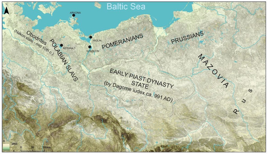 118. Filipowiak, W. Słowiańskie wierzenia pogańskie u ujścia Odry. In Wierzenia Przedchrześcijańskie na Ziemiach Polskich; Kwapiński, M., Paner, H., Eds.; Muzeum Archeologiczne w Gdańsku: Gdańsk, Poland, 1993; pp. 19–46. [Google Scholar]