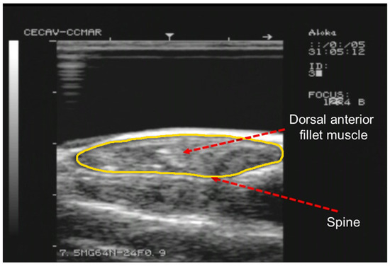 - Silva, S.R.; Guedes, C.M.; Rema, P.; Batista, A.C.; Rodrigues, V.; Loureiro, N.; Dias, J. In vivo assessment of fat composition in Senegalese sole (Solea senegalensis) by real-time ultrasonography and image analysis of subcutaneous fat. Aquaculture 2016, 456, 76–82. [Google Scholar] [CrossRef]