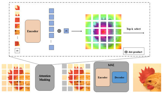 In order to guide and enhance object perception, this paper utilized the inductive bias of object location in the masking strategy. Moreover, attention detection was used as a reasonable judgment to determine whether patches belong to foreground objects or not. The highly attentive patches were taken as input, and the remaining patches were removed. The encoder that was given the pre-trained can compute the attention graph for each input patch.