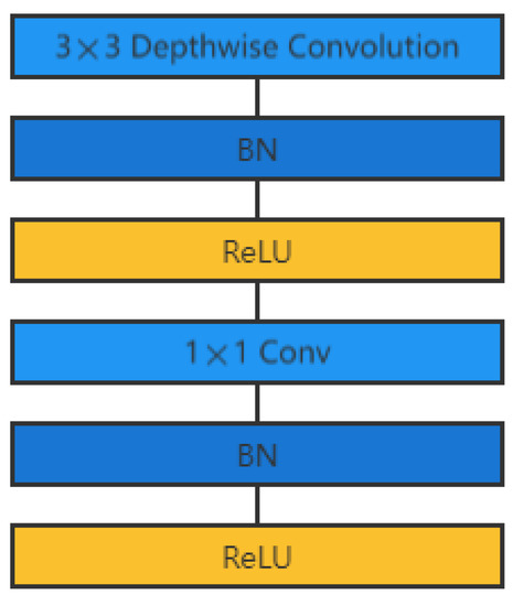 Ordinary convolution is the process of sliding the convolution kernel over the image and finally completing the computation of gray values of all image pixels through a series of matrix operations. Transposed convolution implements the sampling operation in the reverse direction of ordinary convolution and is widely used in semantic segmentation [41], image recognition [42], etc. Dilated convolution, also known as hole convolution, injects holes into the convolution kernel to increase the perceptual field [43] of the model for better feature extraction. Dilated convolution has achieved better performance in tasks such as image recognition [44]; deeply separable convolution has also been extended for the lightweight network model MobileNet. Compared with the typical convolutional approach, it significantly reduces the number of parameters required for the network model operation. Most importantly, the depth-separable convolution separates channels and regions in the regular convolutional operation. The convolution method’s improvement alleviates the feature extraction problem to some extent.
