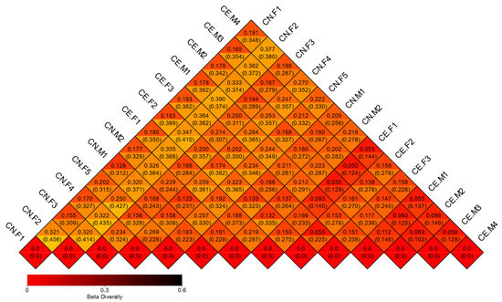- Lozupone Catherine, A.; Hamady, M.; Kelley Scott, T.; Knight, R. Quantitative and qualitative β diversity measures lead to different insights into factors that structure microbial communities. Appl. Environ. Microbiol. 2007, 73, 1576–1585. [Google Scholar] [CrossRef]