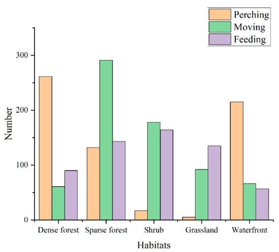 In addition, we classified the behavior of birds [] among different vegetation habitats into the following three categories: