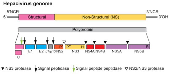 Hepacivirus genome organization (not to scale) and polyprotein processing. Picture from [12].