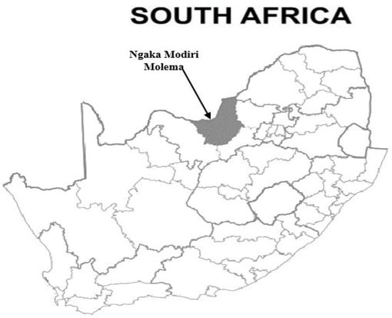 Map indicating the sampling location (Map made with ArcGIS) in the North West province in Ngaka Modiri Molema District Municipality.