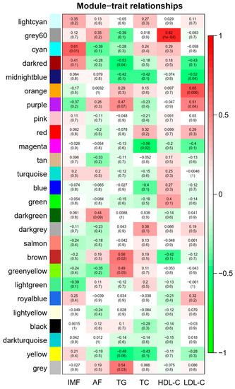 APA StyleZhang, L., Liu, X., & Jia, H. (2022). WGCNA Analysis of Important Modules and Hub Genes of Compound Probiotics Regulating Lipid Metabolism in Heat-Stressed Broilers. Animals, 12(19), 2644. https://doi.org/10.3390/ani12192644