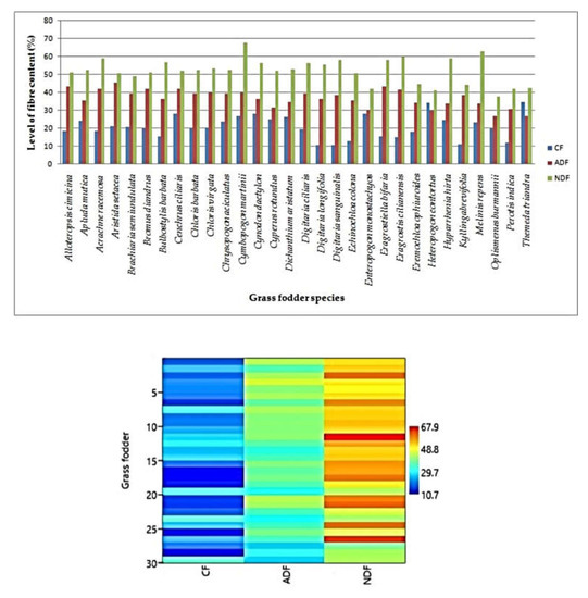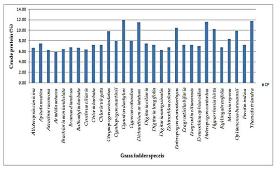 | 8. | Cenchrus ciliaris | 55.87 ± 1.01gh | 71.16 ± 1.65bcde | 55.92 ± 0.60cde | 2.29 ± 0.13efh | 11.27 ± 0.17fghi | 132.72 ± 1.62ghij |