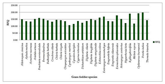 | 22. | Eragrostis cilianensis | 73.68 ± 2.20abc | 83.55 ± 2.88ab | 56.27 ± 1.37cde | 1.99 ± 0.03ghi | 13.57 ± 0.17abc | 135.50 ± 5.12ghij |