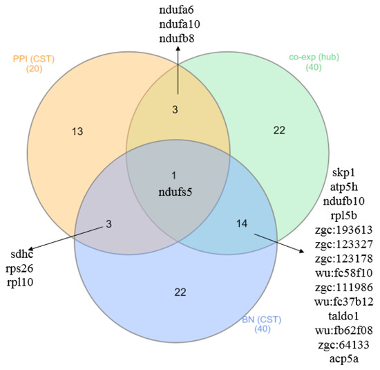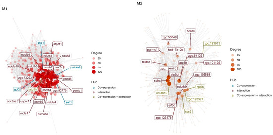 | Hub of M2 | ndufb10,rpl5b,zgc:193613,zgc:123327, rps3, zgc:109888, zgc:161979, pgrmc1,zgc:123178, zgc:194876, zgc:85939,wu:fc58f10,zgc:111986, wu:fd60d11,wu:fc37b12,taldo1, wu:fj82d09,wu:fb62f08,zgc:64133,acp5a |