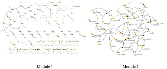 - Fuller, T.F.; Ghazalpour, A.; Aten, J.E.; Drake, T.A.; Lusis, A.J.; Horvath, S. Weighted gene coexpression network analysis strategies applied to mouse weight. Mamm. Genome 2007, 18, 463–472. [Google Scholar] [CrossRef]
