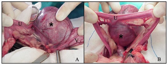 - Johnston, S.D.; Kustritz, M.V.R.; Olson, P.N.S. Disorders of the canine vagina, vestibule, and vulva. In Canine and Feline Theriogenology, 1st ed.; Kersey, R., Ed.; Saunders: Philadelphia, PA, USA, 2001; pp. 225–242. [Google Scholar]
