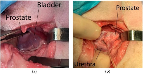 - Häuβler, T.C.; Thiel, C.; Fischer, A.; Kramer, M. Inadvertent iatrogenic prostatectomy and urethrectomy in 2 dogs. Tierarztl. Prax. Ausg. K Kleintiere Heimtiere 2019, 47, 282–289. [Google Scholar]