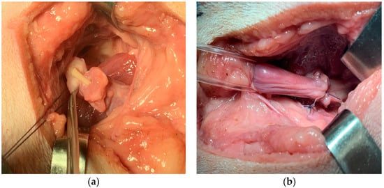 - Przadka, P.; Liszka, B.; Piatek, A.; Skrzypczak, P.; Dzimira, S.; Nizanski, W.; Kielbowicz, Z. Total prostatectomy combined with urethral anastomosis in a dog: A case report. Vet. Med. 2019, 64, 280–286. [Google Scholar] [CrossRef] [Green Version]