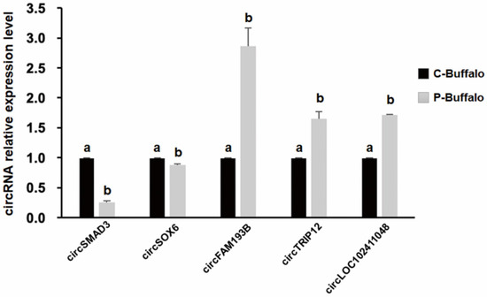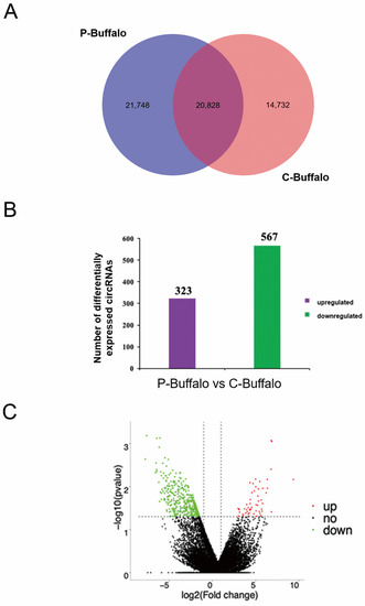 Liu, Q.; Zhang, M.; Guo, T.; Wu, S.; Zong, Y.; Xu, C.; Zhu, Z.; Zhang, Y.; Cao, Z. Expression Profiling of Circular RNAs in Early Pregnant Jianghuai Buffaloes. Animals 2022, 12, 2748. https://doi.org/10.3390/ani12202748