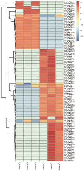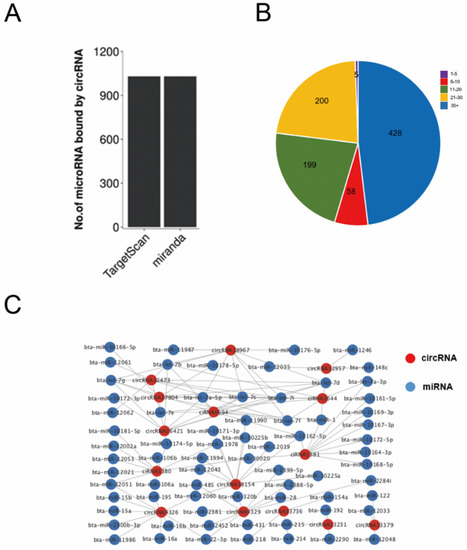 3.4. Predicting Potential Sponging miRNA Targets for circRNAs Expressing in P-Buffalo and C-Buffalo