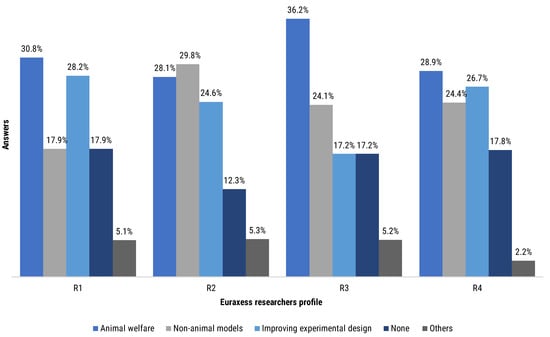 A total of 26.9% of R4 researchers considered that the Directive 2010/63/EU significantly recognises the irreplaceable value of animal research, compared to 12.9% of R2, 10.7% of R1 and to 7.9% of R3 researchers (Table 1). The percentage of R2 researchers considering that the Directive is not acknowledging the value of animal models was 29.0%, whereas for R1, R3 and R4 researchers it was 22.7%, 18.4% and 23.1%, respectively (Table 1).