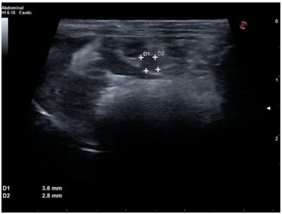 Suspicion of insulinoma in dogs is based on clinical signs, hypoglycemia (blood glucose concentration less than 60 mg/dL) and concurrent hyperinsulinemia. A final diagnosis can only be made through histopathologic examination of a pancreatic mass along with immunohistochemistry [4,30]. In a pet rat, we base our suspicion of insulinoma on low blood glucose results and ultrasound findings. We highly recommend performing abdominal ultrasound in every case of a suspected pancreatic tumor. An experienced ultrasonographer is usually able to find a mass within the pancreas. A typical insulinoma is round with no visible capsule, hypoechoic and homogenous, most commonly measuring 3–5 mm in diameter. Its ultrasound image is quite similar to those seen in dogs and ferrets.