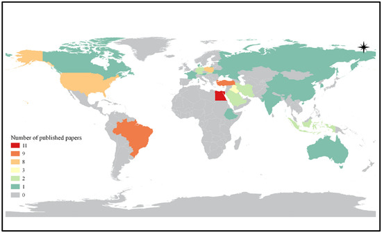 The research studies of papers from the search process were carried out mainly in Egypt, Brazil and Turkey (Figure 2), and the papers were published primarily in Poultry Science, Egyptian Poultry Science Journal and the Journal of Applied Poultry Research.