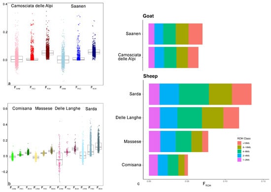 Cortellari, M.; Negro, A.; Bionda, A.; Grande, S.; Cesarani, A.; Carta, A.; Macciotta, N.; Biffani, S.; Crepaldi, P. Using Pedigree and Genomic Data toward Better Management of Inbreeding in Italian Dairy Sheep and Goat Breeds. Animals 2022, 12, 2828. https://doi.org/10.3390/ani12202828