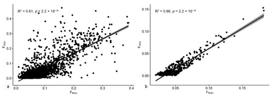 - McQuillan, R.; Leutenegger, A.-L.; Abdel-Rahman, R.; Franklin, C.S.; Pericic, M.; Barac-Lauc, L.; Smolej-Narancic, N.; Janicijevic, B.; Polasek, O.; Tenesa, A.; et al. Runs of Homozygosity in European Populations. Am. J. Hum. Genet. 2008, 83, 359–372. [Google Scholar] [CrossRef] [PubMed]