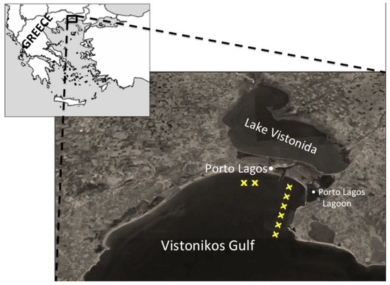 Porto Lagos in Vistonikos Gulf was chosen as the mussel farming area for the pilot application of the SmartMussel system (Figure 1). The area is situated in the Region of Thraki in Northeastern Greece. There are 8 mussel farming units operating in the area, which are new, more sparse (longer distances between the different units), while they have faced problems in the past with regard to the high concentration of toxic substances as a result of which mussel commercialization was prohibited for certain periods. For example, in the spring of 2010, excessive growth of phytoplankton due to environmental factors led to complete destruction of the mussel production in the area. In addition, mussel farms in the area are greatly influenced by the flow of marine currents. For all these reasons, the farms located in the area were an ideal site to test the efficiency of the proposed system.