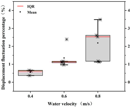 The steady mode was defined by Wise et al. [] as a variation in fish motion not exceeding 2% of body length, while incremental displacement (S) not exceeding ±1 SD was employed as the criterion in this study. The displacement of fish in the steady mode at each flow velocity was divided by body length to compare differences between the two criteria (Figure 7), and the displacement of fish movement in the steady mode was obtained between 0.55% and 2.19% of body length. Indeed, our findings show that fish motion does not significantly change in the steady mode at a modest water flow velocity (0.4 m/s) With such a broad definition, even a 2% inaccuracy would not be consequential. Furthermore, the influence of fish size is not considered by the statistical criterion. Therefore, we consider the standard deviation to be a better criterion for defining steady and unsteady swimming modes.