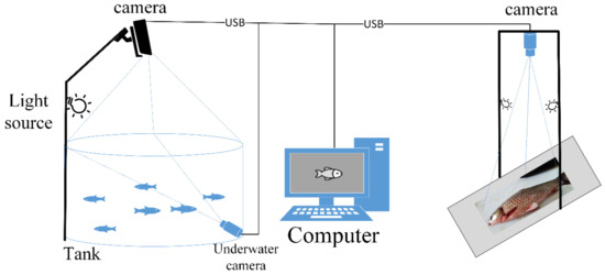 Nowadays, fast, real-time, and automatic diagnosis of diseases is urgently needed, and image-processing technology combined with computer vision has provided automatic and fast diagnosis of fish diseases. This diagnosis has a faster speed compared to expert systems and is more effective in the correct diagnosis of new diseases. In general, fish diseases can be roughly divided into infectious and non-infectious, with the former caused by viruses, bacteria, fungi, and parasites, and the latter caused by environmental stress, genetic factors, and nutritional deficiencies [84]. The current methods of disease detection are still mainly reliant on changes in the surface and internal tissues of the fish. In contrast, behavioral detection may provide a faster and more feasible method of fish disease diagnosis. Fish diseases in water plant culture could be detected by both in-water images and flat images simultaneously, as shown in Figure 5 below.