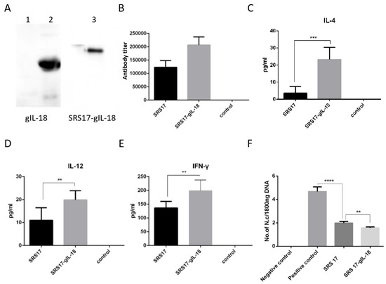 3.3. IL-18 Enhanced the Immunoprotective Effect of SRS2 and SRS17 against N. caninum Infection