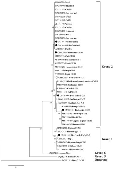 3.1. Prevalence of E. bieneusi in Beef Cattle