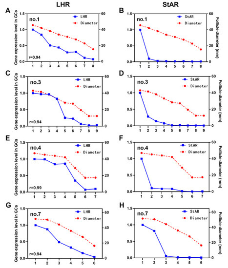 3.3. Relationship between Expression Levels of LHR and StAR and Follicle Diameter