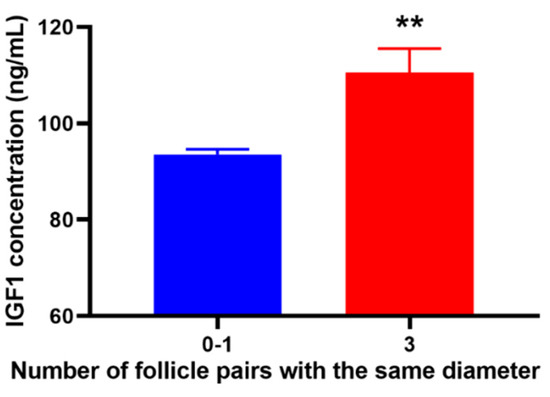 We also found that geese with three pairs of follicles of the same diameter had a higher IGF1 content in the serum (Figure 6).