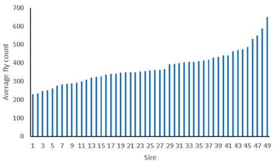 Figure 1. In fact, the average fly count across sire families ranged between 230 and 650 flies.