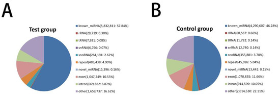 Small RNA classification notes. (A) Classification notes for test groups. (B) Classification notes for control groups.