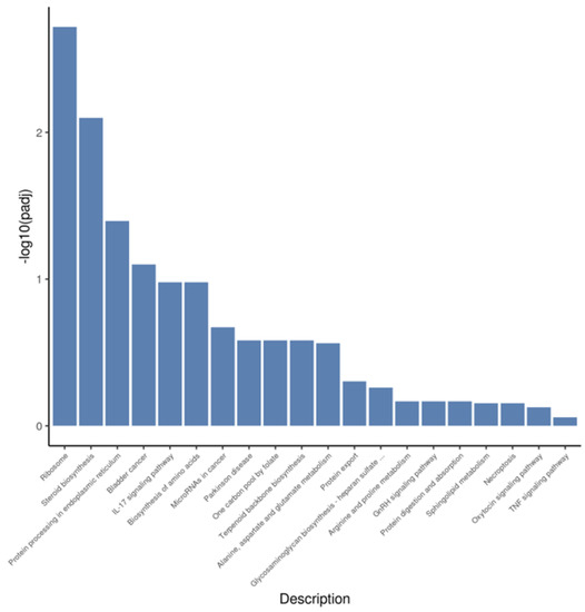 - Love, M.I.; Huber, W.; Anders, S. Moderated estimation of fold change and dispersion for RNA-seq data with DESeq2. Genome Biol. 2014, 15, 550. [Google Scholar] [CrossRef]