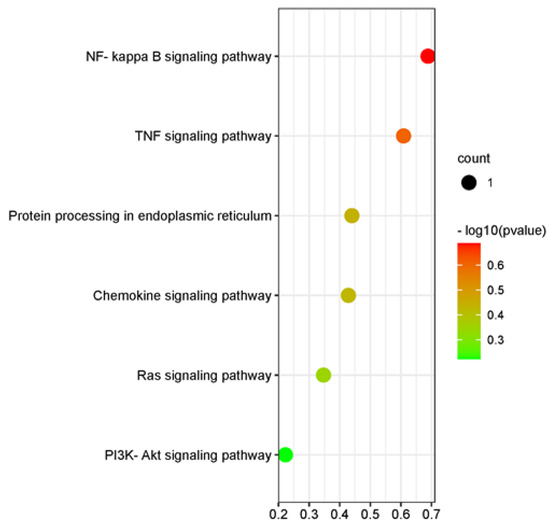 The size and color of the dot represent the number of enriched genes and the magnitude of significance in Figure 6.