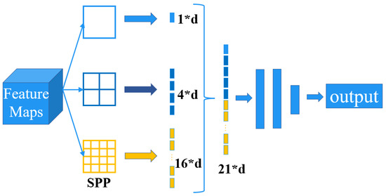 The spatial pyramid pooling network (SPP-Net) [59] is mainly used to tackle how different-sized feature maps enter the fully connected layer. The structure of the SPP-Net is shown in Figure 8.