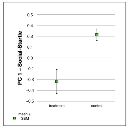 Mean values ± SEM for “PC 1—Social-Startle” in the treatment group (n = 42) and the control group (n = 41).