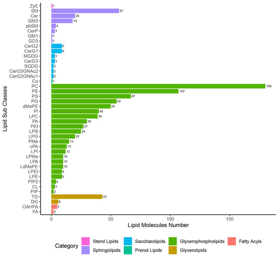 Statistical chart of lipid subclasses and corresponding number of lipid species.
