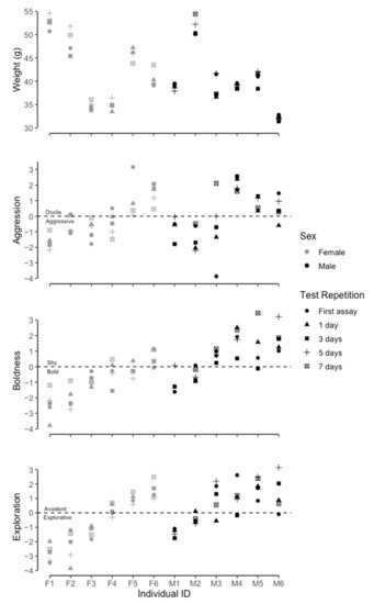 - Webster, M.M.; Ward, A.J.W. Personality and Social Context. Biol. Rev. 2011, 86, 759–773. [Google Scholar] [CrossRef]