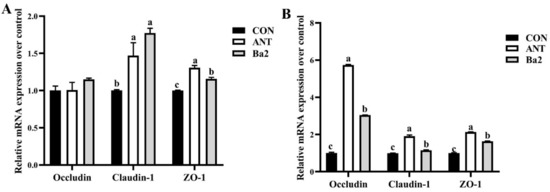 Bacillus subtilis improved the protein levels of occludin and ZO-1 in the small intestine of broilers. Similar to these results, we observed that oral administration of