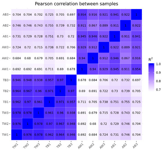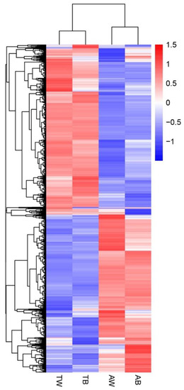 The datasets generated during the current study are available in the NCBI Sequence Read Archive (SRA) database. AB1-3: SRR18697439, SRR18697438, SRR18697435. TW1-3: SRR18697437, SRR18697436, SRR18697428. AW1-3: SRR18697434, SRR18697433, SRR18697432. TB1-3: SRR18697431, SRR18697430, SRR18697429.