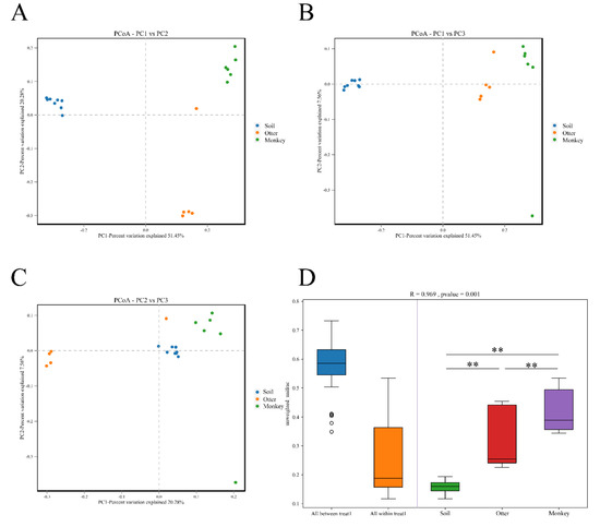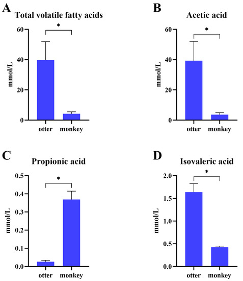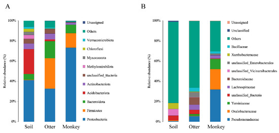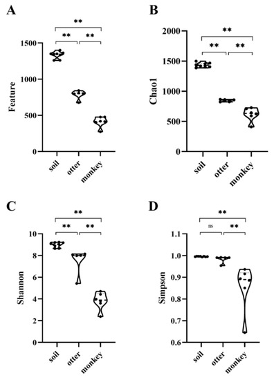 APA StyleZhu, D., Xie, T., Du, R., & Guo, L. (2022). Characterizing the Gut Microbiota of Eurasian Otter (Lutra lutra chinensis) and Snub-Nosed Monkey (Rhinopithecus roxellana) to Enhance Conservation Practices in the Foping National Nature Reserve of China. Animals, 12(22), 3097. https://doi.org/10.3390/ani12223097