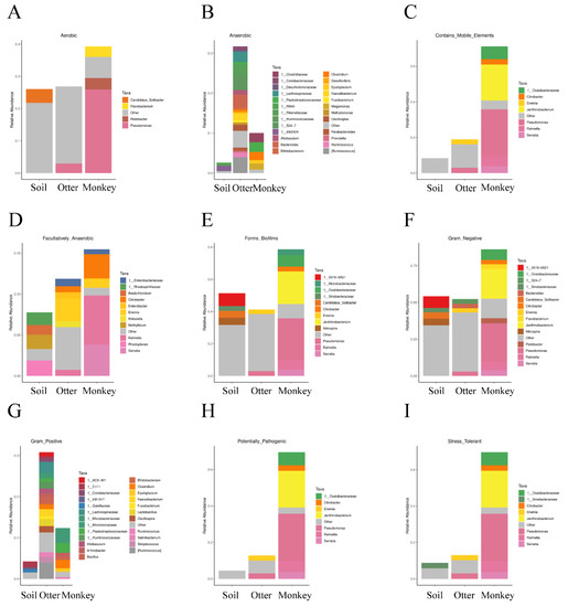 - Grieneisen, L.E.; Charpentier, M.J.E.; Alberts, S.C.; Blekhman, R.; Bradburd, G.; Tung, J.; Archie, E.A. Genes, geology and germs: Gut microbiota across a primate hybrid zone are explained by site soil properties, not host species. Proc. Biol. Sci. 2019, 286, 20190431. [Google Scholar] [CrossRef] [PubMed]